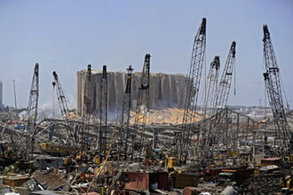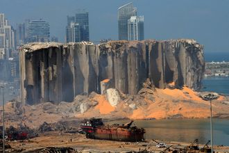 A picture shows destruction at Beirut port on August 5, 2020 in the aftermath of a massive explosion in the Lebanese capital. - Rescuers searched for survivors in Beirut after a cataclysmic explosion at the port sowed devastation across entire neighbourhoods, killing more than 100 people, wounding thousands and plunging Lebanon deeper into crisis. The blast, which appeared to have been caused by a fire igniting 2,750 tonnes of ammonium nitrate left unsecured in a warehouse, was felt as far away as Cyprus, some 150 miles (240 kilometres) to the northwest. (Photo by JOSEPH EID / AFP)