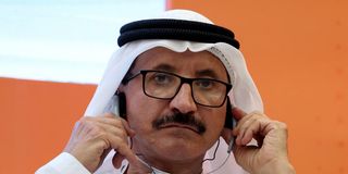 Chairman of DP World Sultan Ahmed bin Sulayem wears his headphones during the UAE-India Business summit at the Mahatma Mandir in Gandhinagar, Gujarat, India January 10, 2024. PHOTO | REUTERS