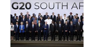 Leaders and delegates pose for a family photo on the first day of the G20 Leaders' Summit at the Nasrec Expo Centre in Johannesburg, South Africa, November 22, 2025.