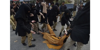 He later died at a hospital after succumbing to his injuries. A month later, a local tourist was dragged from a police station and killed by a mob in northwest Pakistan after being accused of blasphemy. The mob had gathered after the man was accused of desecrating the Quran. Footage shows the man’s body being paraded through the streets and then set alight.
