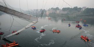 CCTV footage showed the structure in Prime Minister Narendra Modi's home state of Gujarat swaying -- with a few people apparently deliberately rocking it -- before it suddenly gave way.