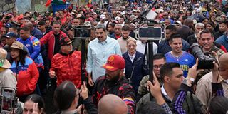 Venezuela's President Nicolas Maduro, walks with first lady Cilia Flores and Interior Minister Diosdado Cabello, as he joins his supporters during a march to commemorate the Battle of Santa Ines, on the same day Venezuelan opposition leader Maria Corina Machado was awarded the 2025 Nobel Peace Prize in Norway, in Caracas, Venezuela, December 10, 2025. PHOTO | REUTERS