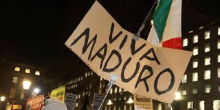 Demonstrators hold placards during a protest against U.S. strikes against Venezuela and the capture of Venezuelan President Nicolas Maduro, in London, Britain, January 5, 2026. PHOTO | REUTERS