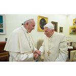 Pope emeritus Benedict XVI (left) speaks with Pope Francis during a papal mass for elderly people at St Peter's square at the Vatican on September 28, 2014.