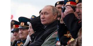"Today civilisation is again at a decisive turning point," Putin said standing shoulder to shoulder with elderly veterans and soldiers from Russia's Ukraine campaign.