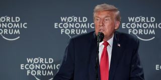 U.S. President Donald Trump speaks during a reception with business leaders at the 56th annual World Economic Forum (WEF), in Davos, Switzerland, January 21, 2026. PHOTO | REUTERS