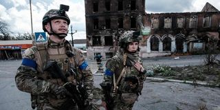 A Ukrainian soldier looks up to the sky after hearing the sound of a drone during a patrol in the frontline city of Kupiansk, Kharkiv region, on 24 September, 2022. PHOTO | AFP