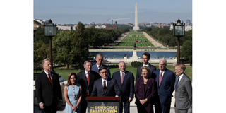 Speaker of the House Mike Johnson (R-LA) speaks during a press conference on the first day of a partial government shutdown, at the U.S. Capitol, in Washington, D.C., U.S., October 1, 2025.
