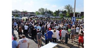 People gather outside of Tops market on May 15, 2022 in Buffalo, New York. Yesterday a gunman opened fire at the store, killing ten people and wounding another three. PHOTO/ AFP