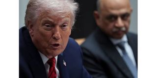 US President Donald Trump participates in a roundtable discussion with business leaders at the White House in Washington, D.C., US., December 10, 2025.