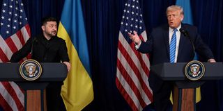 Ukrainian President Volodymyr Zelenskiy listens to U.S. President Donald Trump, after Trump said that Russian President Vladimir Putin expressed willingness to help Ukraine "succeed", during a press conference at Trump's Mar-a-Lago club, in Palm Beach, Florida, U.S., December 28, 2025. PHOTO | REUTERS