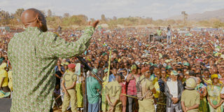 The CCM presidential candidate, Dr John Magufuli, speaks to Babati crowds in Manyara Region during the campaign rally held at Kwaraa ground. PHOTO|JOSEPH LYIMO
