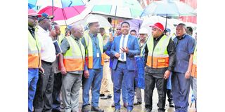 The minister of State in the Office of the Vice President (Union and Environment), Selemani Jafo (centre), talking to port officials regarding more than 500 containers of damaged raw materials abandoned at Dar es Salaam port recently. PHOTO | SUNDAY GEORGE