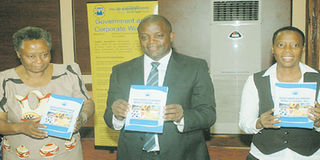 Mr Julius Ningu (centre) of the Vice President’s Office with Legal and Human Rights Centre (LHRC) Executive Director Helen Kijo-Bisimba (left) and LHRC official Flaviana Charles during the launch of the ‘Human Rights and Business in Tanzania’ report Dar es Salaam yesterday. PHOTO | JOSEPH ZABLON