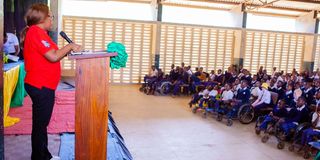 The Head of the Compliance Unit at NBC Bank, Ms. Sarah Laiser, addressing students from Pugu Boys Secondary School in Dar es Salaam who participated in a short seminar on financial education and savings conducted by the bank at the school over the weekend. PHOTO | COURTESY