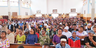 Roman catholic faithful attend a special remembrance mass for those killed during and after the October 29 election day unrest at Mbeya Cathedral on Sunday. PHOTO | SADAM SADICK