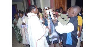 Father Edward Mwanjamila leads the faithful in lighting candles during the Easter Vigil Mass at the Catholic Church of the Outstation of Saint Pope John Paul II in Moshi, Kilimanjaro Region. PHOTO | CORESPONDENT