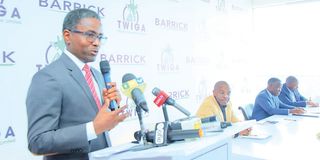 Barrick Tanzania country manager Dr Melkiory Ngido addresses journalists, guests and students during a farewell ceremony in Dar es Salaam after the company awarded full scholarships to five University of Dar es Salaam students to study mining and geology at the University of Johannesburg. PHOTO | THE CITIZEN CORRESPONDENT