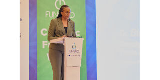 Deputy Executive Secretary – Trade and Innovation at the National Planning Commission, Dr. Blandina Kilama, speaks during the unveiling ceremony of new investees under the FUNGUO Innovation Programme