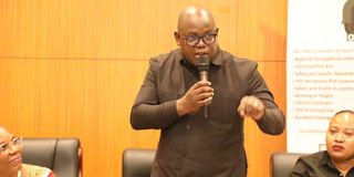 TUGHE Deputy Secretary-General, Mr Rugemalila Rutatina, delivers workers’ remarks during the Fourth Meeting of OSHA’s Fifth Workers' Council, held at the Mwalimu Nyerere Leadership Institute in Kibaha, Coast Region. PHOTO | COURTESY