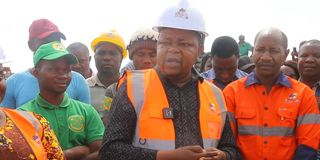 Minister of State in the Prime Minister’s Office for Regional Administration and Local Government (PMO-RALG), Prof Riziki Shemdoe, speaks during an inspection of a bridge project linking Nyang’wale and Geita districts. PHOTO | COURTESY