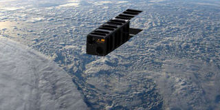 An artist's impression of an Indian-made nano-satellite in orbit around the Earth with a background image by Thomas Pesquet released on January 10, 2018. Kenya is set to launch its first locally made $1m satellite, supported by Japan Aerospace Exploration Agency. AFP PHOTO | LESIA | OBSERVATOIRE DE PARIS-PSL