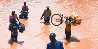 Kibande villagers in Buhingwe District, Kigoma Region, cross the Malagarasi River on the Tanzania-Burundi border on Wednesday to a market at Murambi in Burundi. PHOTO| THE CITIZEN CORRESPONDENT