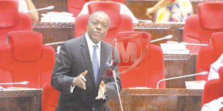 The minister of Energy and Minerals, Prof Sospeter Muhongo, responds to questions from the MPs in the Parliament in Dodoma yesterday.