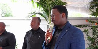Former Hai District Commissioner in Kilimanjaro Region, Lengai Ole Sabaya, speaks during the funeral of the mother of Hai MP Saashisha Mafuwe. PHOTO | COURTESY