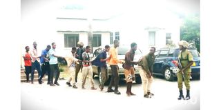 Some of the suspects facing charges of property destruction and armed robbery in connection with incidents arising from the October 29, 2025 General Election. PHOTO|FILE