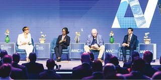From right: Goolam Ballim, chief economist at Standard Bank Group, Dr Michael Power, managing director at KasKazi Consulting, and Ms Yvonne Mhango, Africa Research Economist at Bloomberg, during a panel session at the African Markets Conference hosted by business broadcaster Ms Gugulethu Mfuphi. PHOTOS | REPORTER