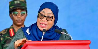 President Samia Suluhu Hassan addresses leaders and members of the public during the launch of Tanzania’s first deep-sea fishing vessel at the Mwalimu Nyerere Memorial Academy in Kigamboni, Dar es Salaam, on April 25, 2026. PHOTO | STATE HOUSE