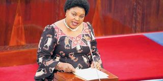 The Minister of State in the Prime Minister’s Office (Policy, Parliamentary Affairs, Labour, Employment, Youth and the Disabled), Ms Jenista Mhagama speaks in Parliament about the Public Service Social Security Act, 2018 during Bunge session in Dodoma. PHOTO | EDWIN MJWAHUZI