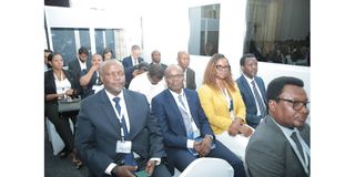 Standard Chartered's Kariuki Ngari, CEO for Kenya & Africa, Herman Kasekende, CEO of Standard Chartered Tanzania, Desideria Mwegelo, Head of Corporate Affairs, and Lewis Mlay at the Africa Energy Summit in Dar es Salaam