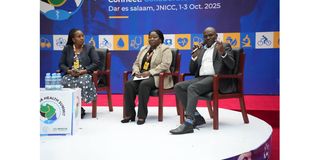 Climate expert from the Tanzania Meteorological Authority (TMA), Dr Alfred Kondowe (right), makes a point on Friday, 3 October 2025, during the KISHADE Forum in Dar es Salaam. The key session at the 12th Tanzania Health Summit also featured Internal Medicine Specialist and LEAD Foundation project leader, Dr Faraja Chiwanga (centre), plus Director of Preventive Services from the Ministry of Health, Dr Otilia Gowelle (second right). PHOTO | COURTESY.