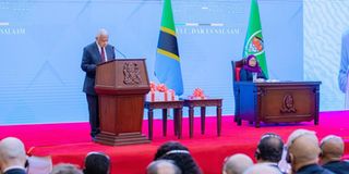 Chairperson of the Presidential Commission of Inquiry into incidents during and after the October 2025 General Election, Retired Chief Justice Mohamed Chande Othman, presents the report of the commission’s report at State House in Dar es Salaam on April 23, 2026. PHOTO | STATE HOUSE