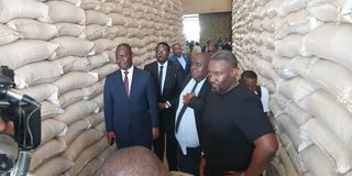 Officials from the National Food Reserve Agency (NFRA) with a delegation representing the President of the Republic of Congo during a visit to inspect maize stored in the country ahead of the commencement of purchase procedures. PHOTO | COURTESY