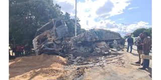 He identified the deceased by single names as Lukas, the driver of the lorry carrying sand, and his assistants, Elisha and Kevin, who were trapped when their lorry caught fire.