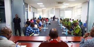 Participants attend a meeting on truck congestion at the Tunduma border during a joint session with Songwe Regional Commissioner Jabir Omary Makame. The meeting took place on Tuesday, December 16, 2025. PHOTO | DENIS SINKONDE