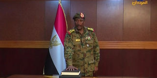 A grab from a broadcast on Sudan TV shows Lieutenant General Abdel Fattah al-Burhan Abdulrahman taking oath on 12 April 2019 as chief of the new military council, in the capital Khartoum. Picture: AFP