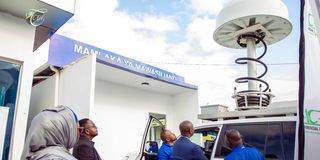 Deputy Permanent Secretary of the Ministry of Information, Communication, and Information Technology, Mr. Selestine Kakele, attentively listens to remarks shared by TCRA's Principal Technician regarding the functionality of a mobile spectrum monitoring equipment. This essential tool, utilized by the communications regulator, enables the monitoring of spectrum and the effective mitigation of interference challenges. PHOTO | COURTESY