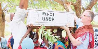 UN Resident Coordinator to Tanzania Alvaro Rodriguez helps villagers to hang a beehive owned by a group of beekeepers in Ikungu District, Singida region. Photo|File
