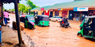 Vehicles pass on a flooded road in Kitunda, Dar es Salaam, following heavy rains that pounded the city for several hours yesterday. PHOTO | DEVOTHA KIHWELO