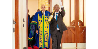 The Serjeant-at-Arms escorts the newly elected Speaker, Mussa Azzan Zungu, into the chamber carry-ing the Mace for the first sitting of the 13th Parliament in Dodoma yesterday.. PHOTO | COURTESY
