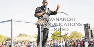 Musoma Urban parliamentary candidate on a Chadema ticket, Mr Vincent Nyerere, speaks at a campaign rally at Kigera Primary School grounds recently. PHOTO | VENANCE NESTORY