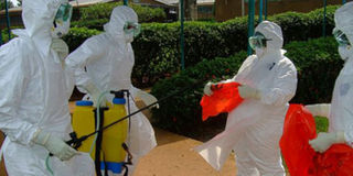 Officials from the World Health Organization wear protective clothing during a different Ebola outbreak in July 2012.PHOTO|AFP