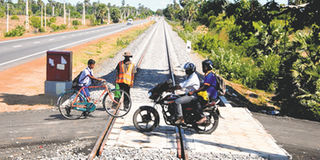 People near the northern village of Pallai in Sri Lanka cross a railway line that was under construction in September 2014. PHOTO |FILE