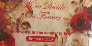 A hawkeyed adherent of this column took a shot of this one, a card that was probably meant to express the emotional commitment of two lovebirds as the world celebrated Saint Valentine’s Day. So what does it mean when you tell one you adore, “We’re Decide On Forever?” Our guess: “We’ve decided our love is forever.” Trust postcard scriptwriters! PHOTO | R MSANGI