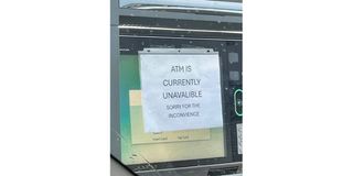 Automated teller machine currently UNAVALIBLE? What does that mean? It means absolutely nothing, which is why, we aver, the graphic artist who prepared the notice was instructed to write “UNAVAILABLE.” How about “Sorry for the INCONVIENCE?” It’s nonsensical as well. Why, the word is INCONVENIENCE. Trust graphic artists! PHOTO | COURTESY