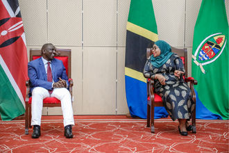President Samia Suluhu Hassan and her counterpart from Kenya, Dr William Ruto during media briefing after holding a tete-a-tete at State House in Dar es Salaam on October 10, 2022. PHOTO " STATE HOUSE